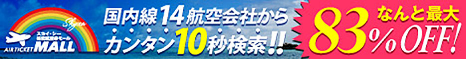【最大88%OFF!】ANA・JAL・LCC含む国内線13社を横断検索。株主優待チケットも販売で、日時変更も可能な便利な格安航空券